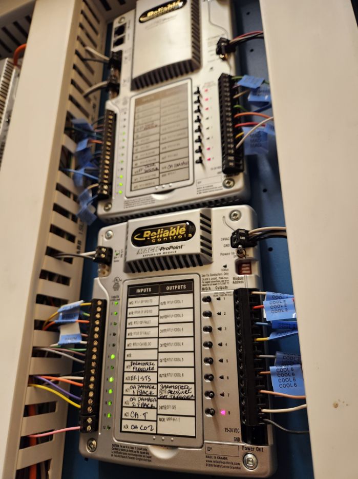 The building that houses American Legacy Academy in Windsor, CO got a complete overhaul to bring this brand new K-8 school to fruition. The buildings previous tenants already had a BAS (Building Automation System) in place but with building up new walls and outfitting it to comfortably house many students, it was necessary to update some old controllers and install some new ones as well.